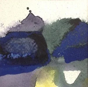 Little Landscape 1. Mixed media Aquacryl and Inkt. 12 -12.on paper. Passepartout total 28 cm.